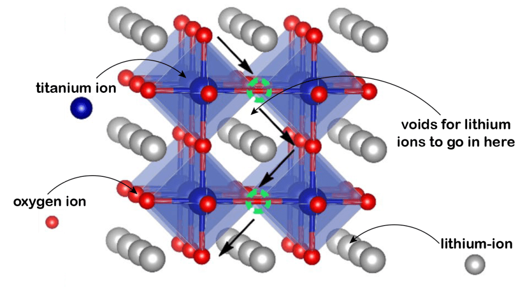 High storage capacity: For lithium-ion batteries, high storage capacity in positive electrodes is essential for enhancing overall energy density. This capacity is determined by the amount of lithium ions that the electrode material can host during the battery’s discharge (lithiation) and charge (delithiation) cycles. A material’s ability to accommodate a high concentration of lithium ions is facilitated by its structure, which should feature multiple voids and redox centers to allow easy ingress and egress of electrons and ions. Consider the example of a perovskite structure utilizing titanium (Ti) as the transition metal: