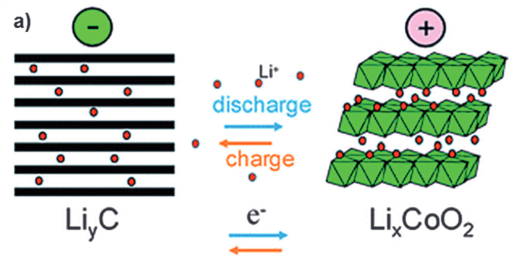 For batteries to function efficiently, the intercalation of the ions inside the electrodes must be maximized: the more ions that can be inserted into an electrode, the more capacity the battery will have. Similarly, if the ions can exit the electrode very easily and leave it virtually untouched, the electrode can continue operating efficiently, thus allowing for a better and durable battery performance. The intercalation process can be best observed in the following diagrams: